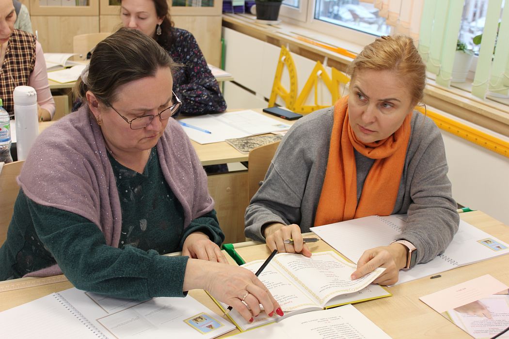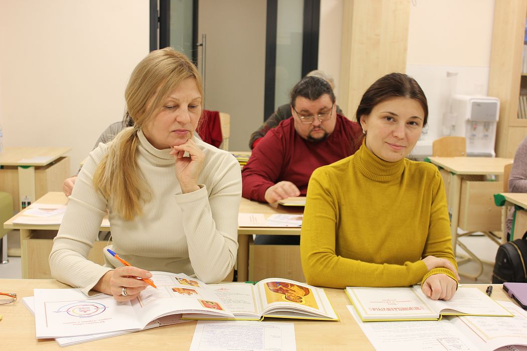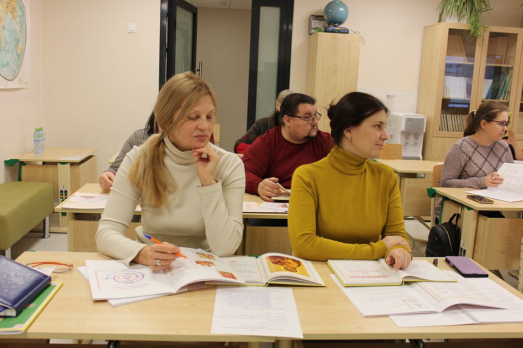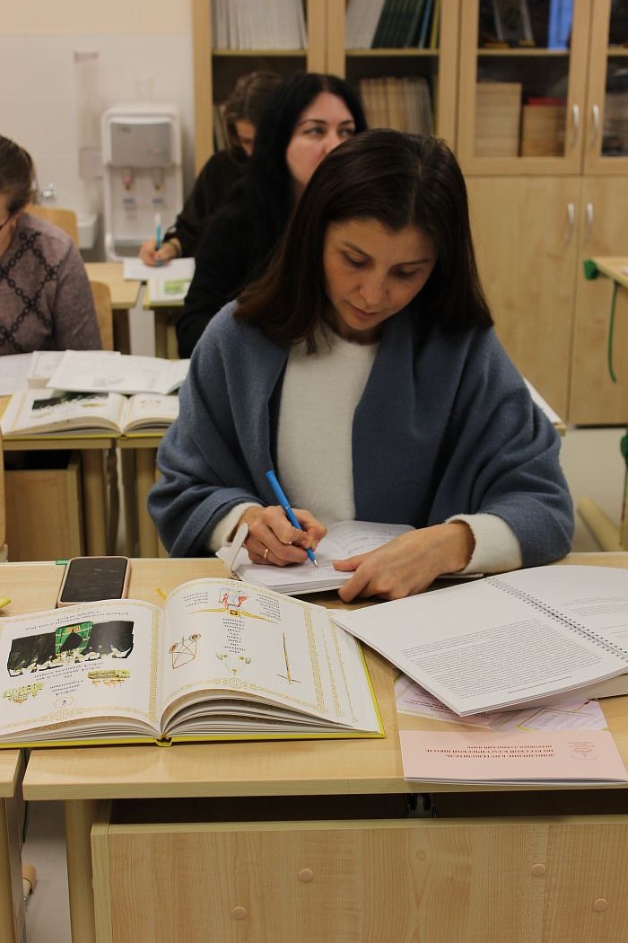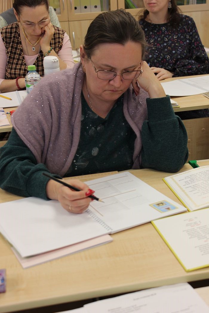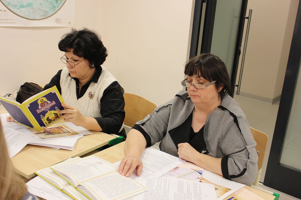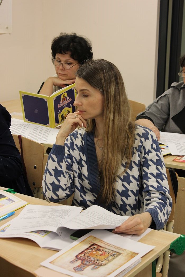 Большое спасибо Марине Вениаминовне за эмоциональную и подробную подачу материала, за открытый диалог. Обучение прошло на одном дыхании, мы просто влюбились в церковнославянский язык. Поразила глубина и целостность программы, низкий поклон автором за проделанную работу. Спасибо организаторам курса за возможность получить эти знания, а замечательной гимназии – за гостеприимство.