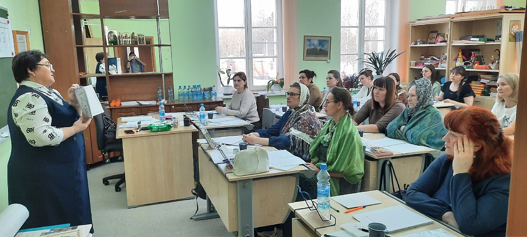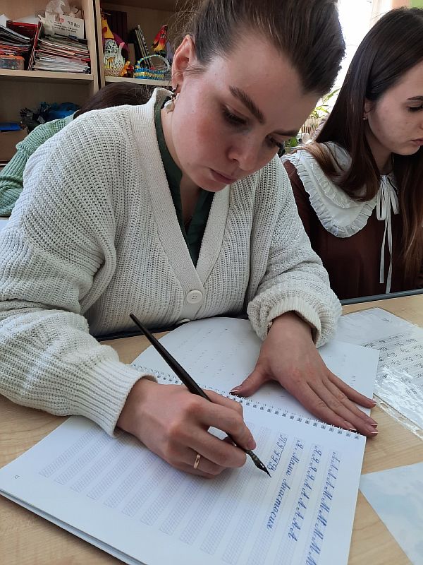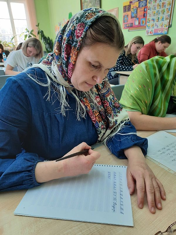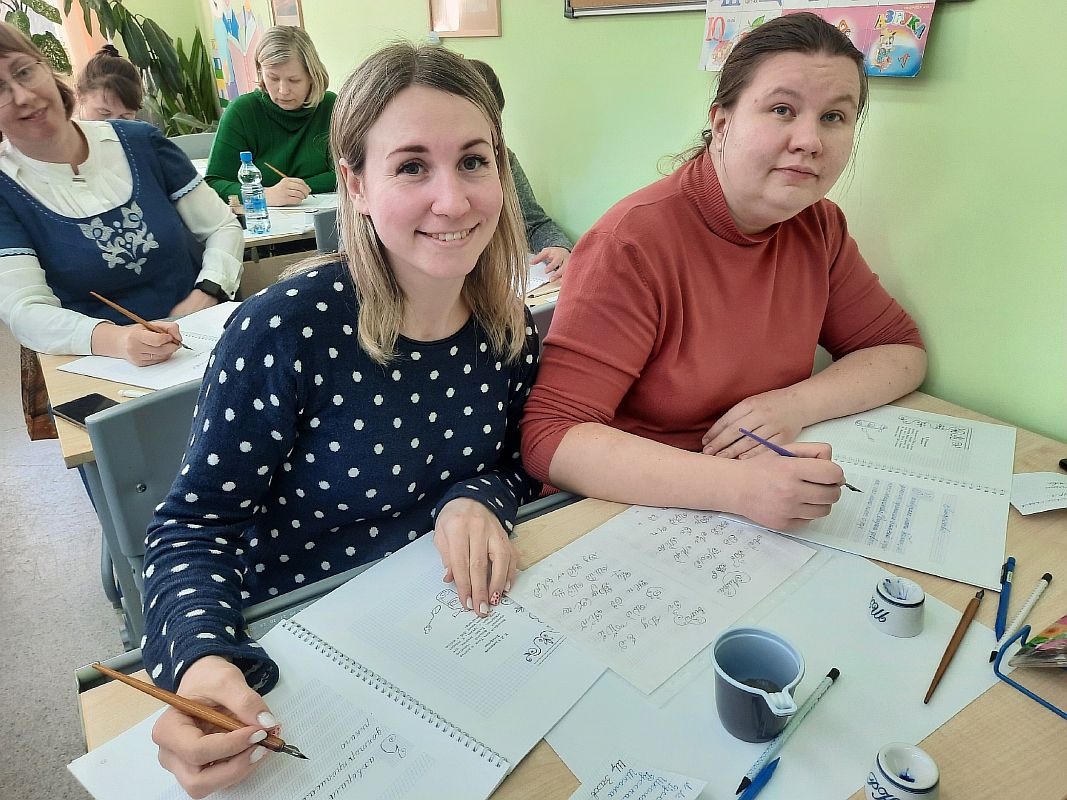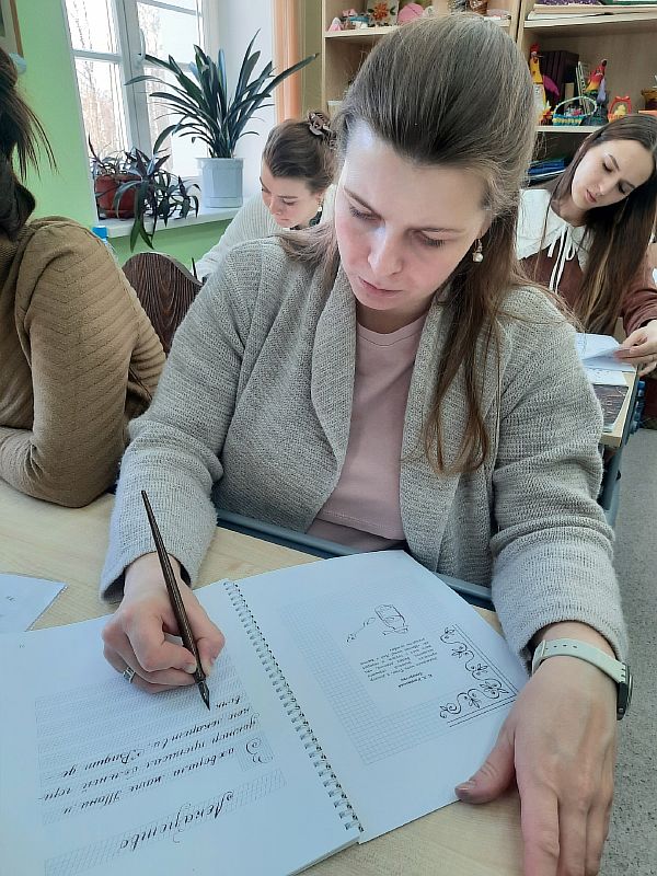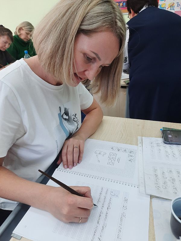– На берегу реки Шексны стоит храм, при котором проходил семинар, и мы могли любоваться красивыми видами, – делится впечатлениями Марина Алексеевна. – Участниками семинара стали в основном те, кто обучают детей на семейном обучении, занимаются в воскресной школе при храме. Семинар очень ждали, с удовольствием слушали, запоминали, записывали. Две бабушки вспомнили, как и сами в начальной школе писали перьевой ручкой. Теперь учат чистописанию своих внуков. После семинара люди говорили: «Мы теперь поняли, какие мы делали ошибки». Стало понятно, что в чистописании нет мелочей, на всё нужно обращать внимание.