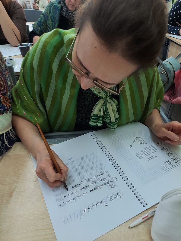 Марина Алексеевна провела занятие на высоком уровне. Многое узнали о написании букв, соединений слов, оформлении работ. Прекрасная практика!
