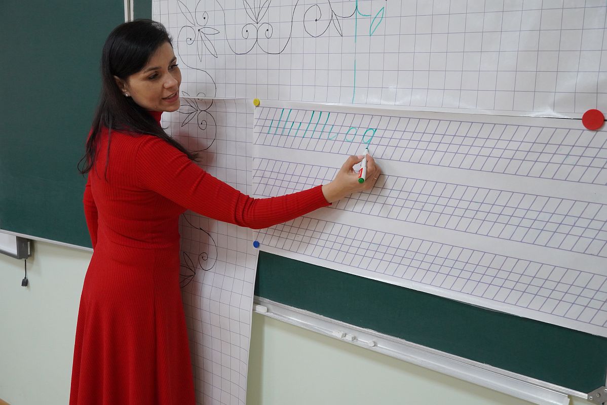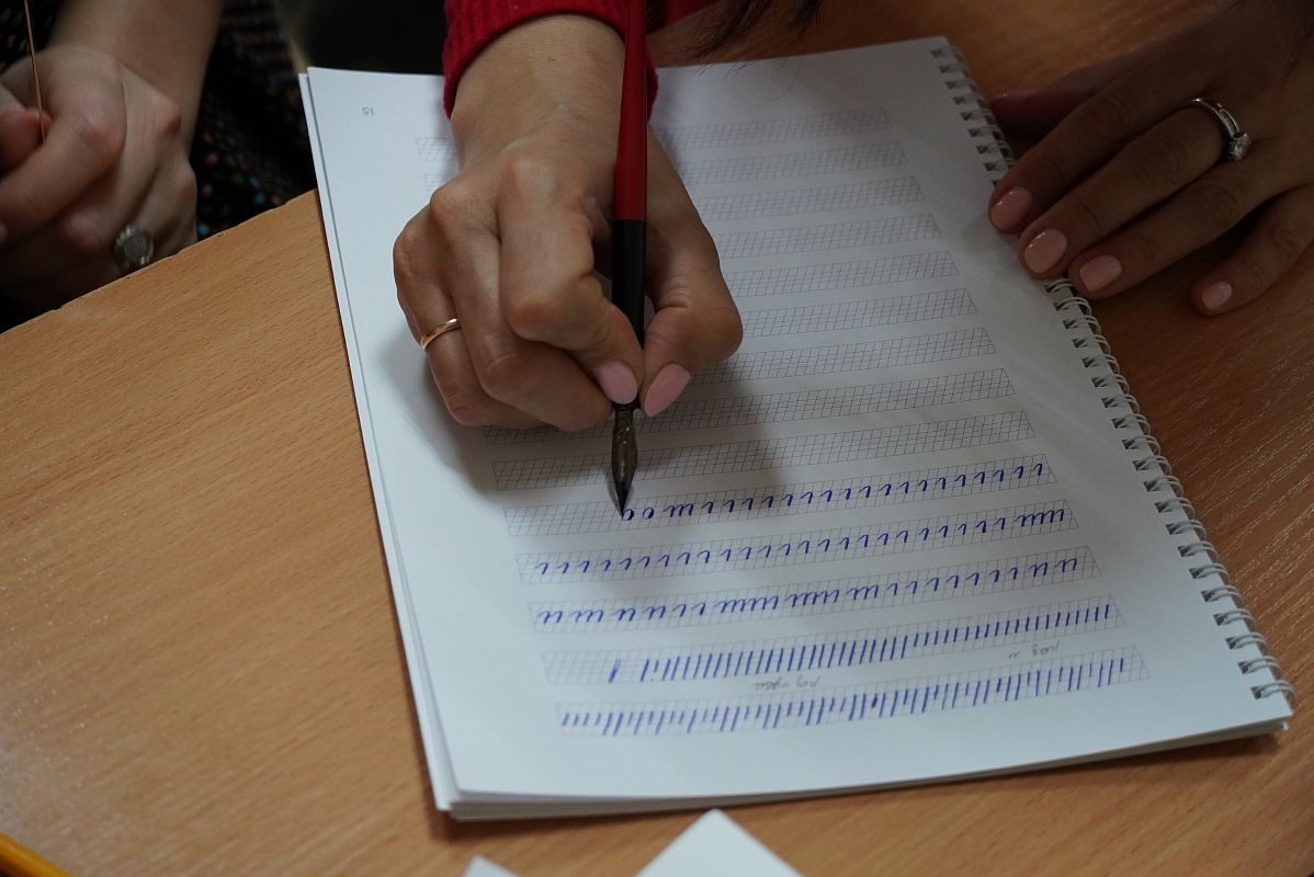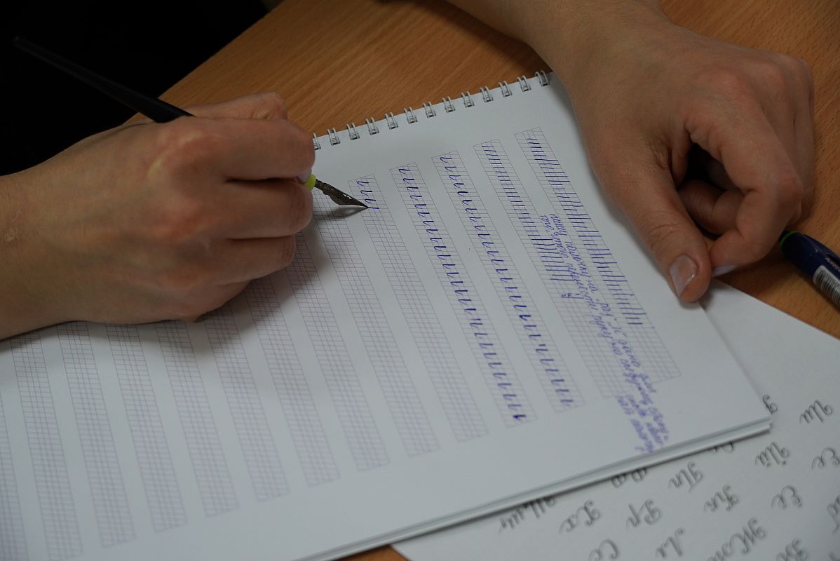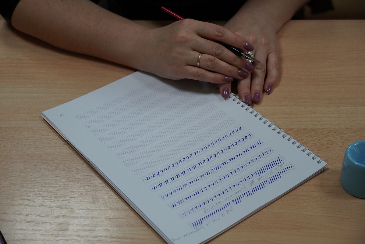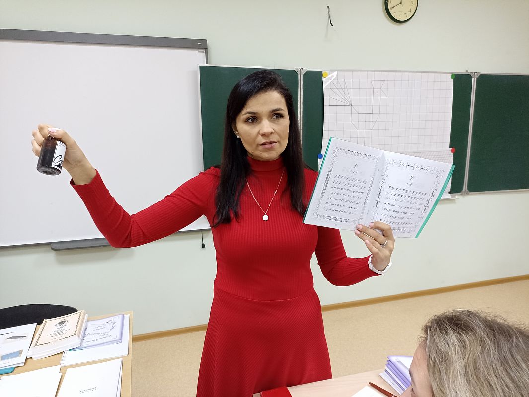 — Писать красиво можно научить каждого ребёнка. У слушателей семинара это утверждение сначала вызывает сомнения, — рассказала Елена Викторовна, — ведь способности у всех разные. В процессе занятий, пробуя перо самостоятельно, участники видят, что не могут идеально копировать образец буквы с доски. Но по мере того, как постигают методику, узнают требования, принципы чистописания, практикуются, результат становится всё лучше. У детей всё происходит точно так же. Важно то, что методист, как и учитель в школе, много раз проходит по классу, берёт руку обучающегося, показывает правильное положение, объясняет, в чём ошибка. К концу семинара участники утверждаются во мнении, что всех детей можно научить писать красиво, и методика даёт для этого всё: пособия, инструменты, позволяет идти от простого к сложному. Так что если у учителя есть желание, и он прилагает усердие, то результат обязательно будет!