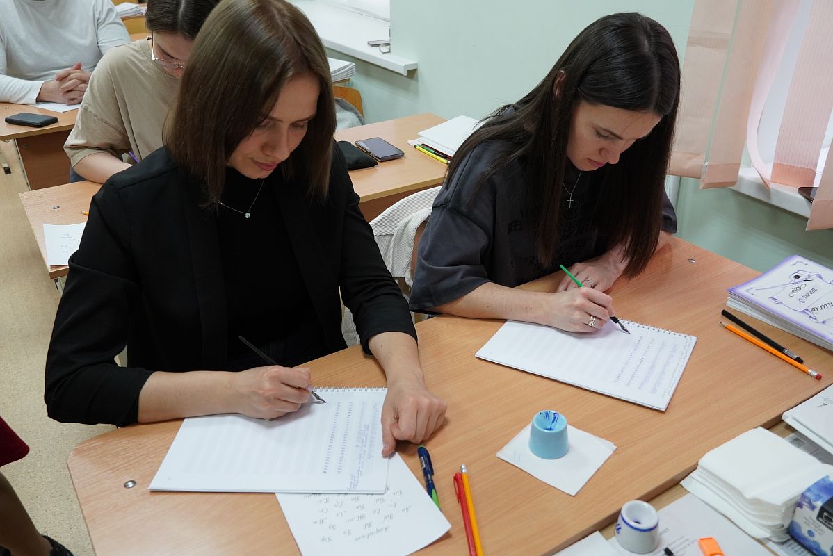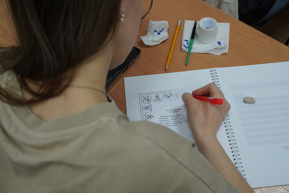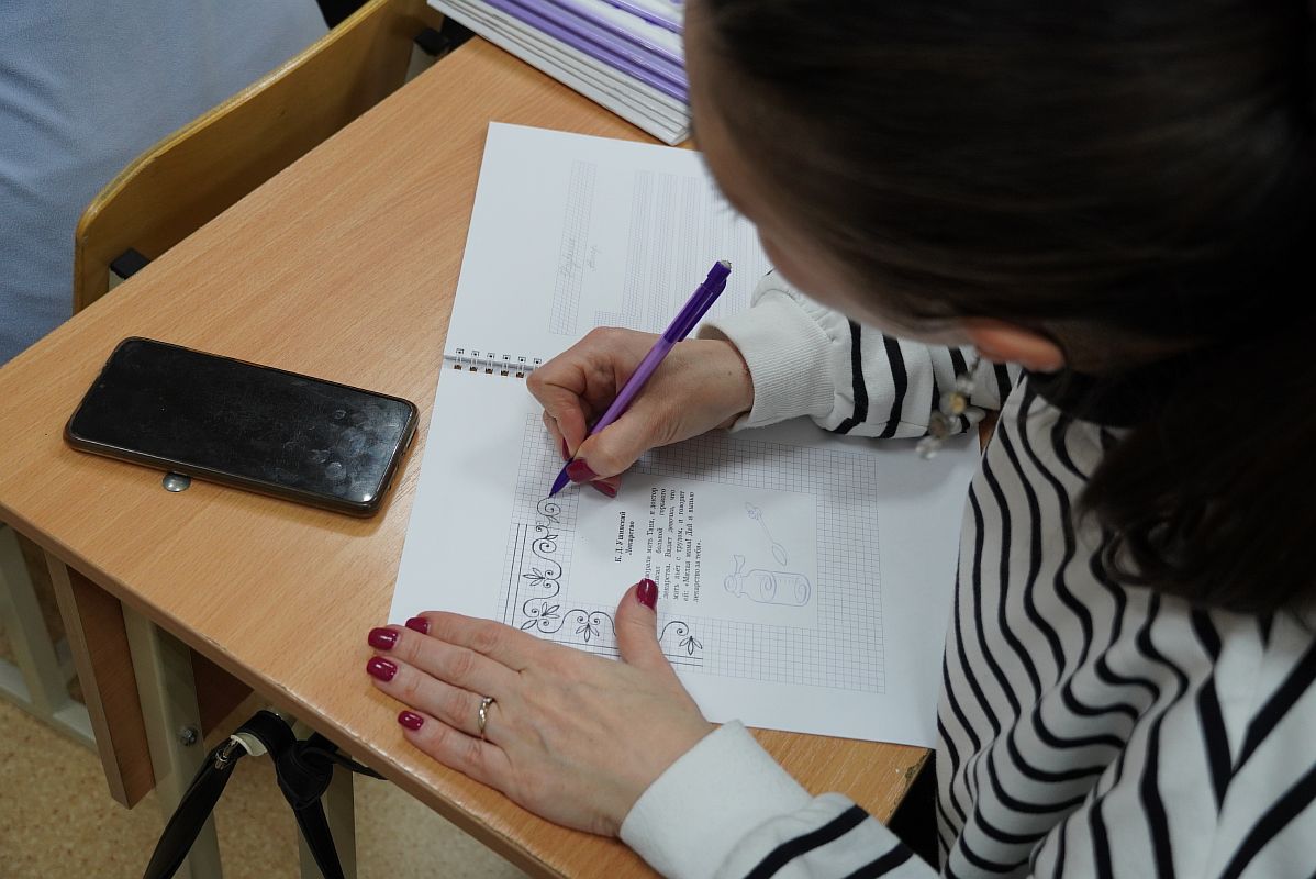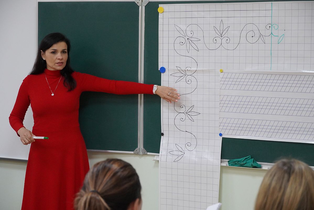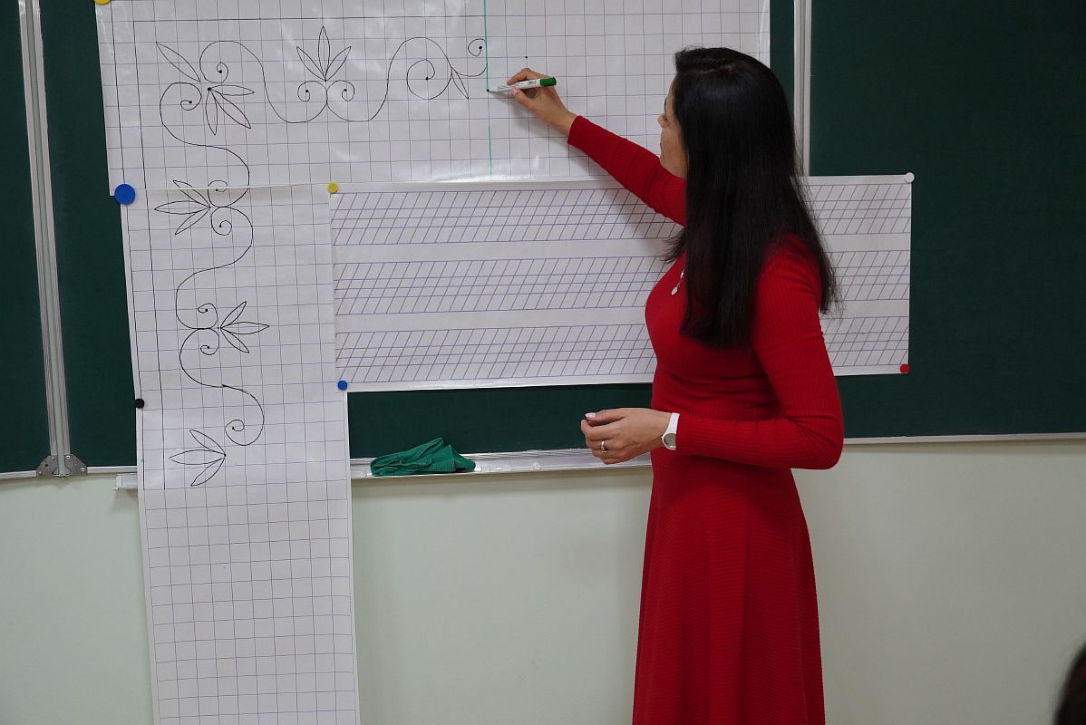 — Писать красиво можно научить каждого ребёнка. У слушателей семинара это утверждение сначала вызывает сомнения, — рассказала Елена Викторовна, — ведь способности у всех разные. В процессе занятий, пробуя перо самостоятельно, участники видят, что не могут идеально копировать образец буквы с доски. Но по мере того, как постигают методику, узнают требования, принципы чистописания, практикуются, результат становится всё лучше. У детей всё происходит точно так же. Важно то, что методист, как и учитель в школе, много раз проходит по классу, берёт руку обучающегося, показывает правильное положение, объясняет, в чём ошибка. К концу семинара участники утверждаются во мнении, что всех детей можно научить писать красиво, и методика даёт для этого всё: пособия, инструменты, позволяет идти от простого к сложному. Так что если у учителя есть желание, и он прилагает усердие, то результат обязательно будет!