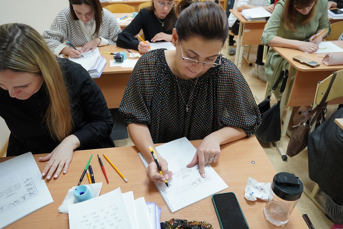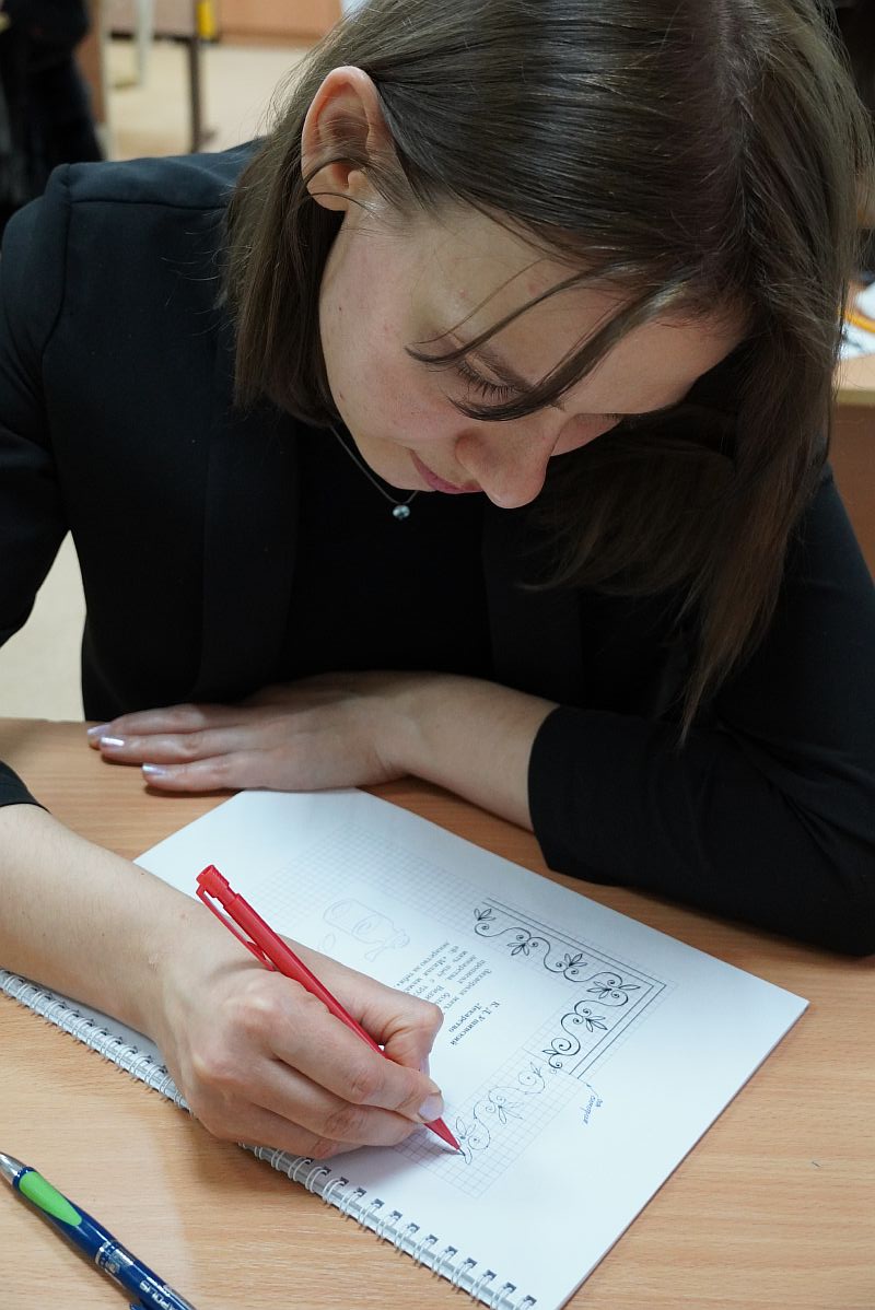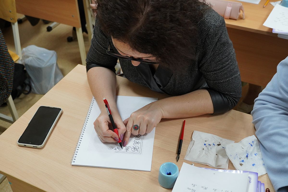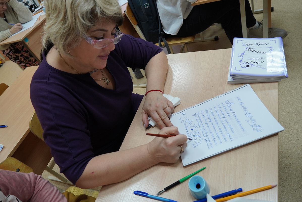 Тренер-методист — мастер своего дела, который трепетно и внимательно передал участникам семинара накопленный опыт и знания и практики чистописания.