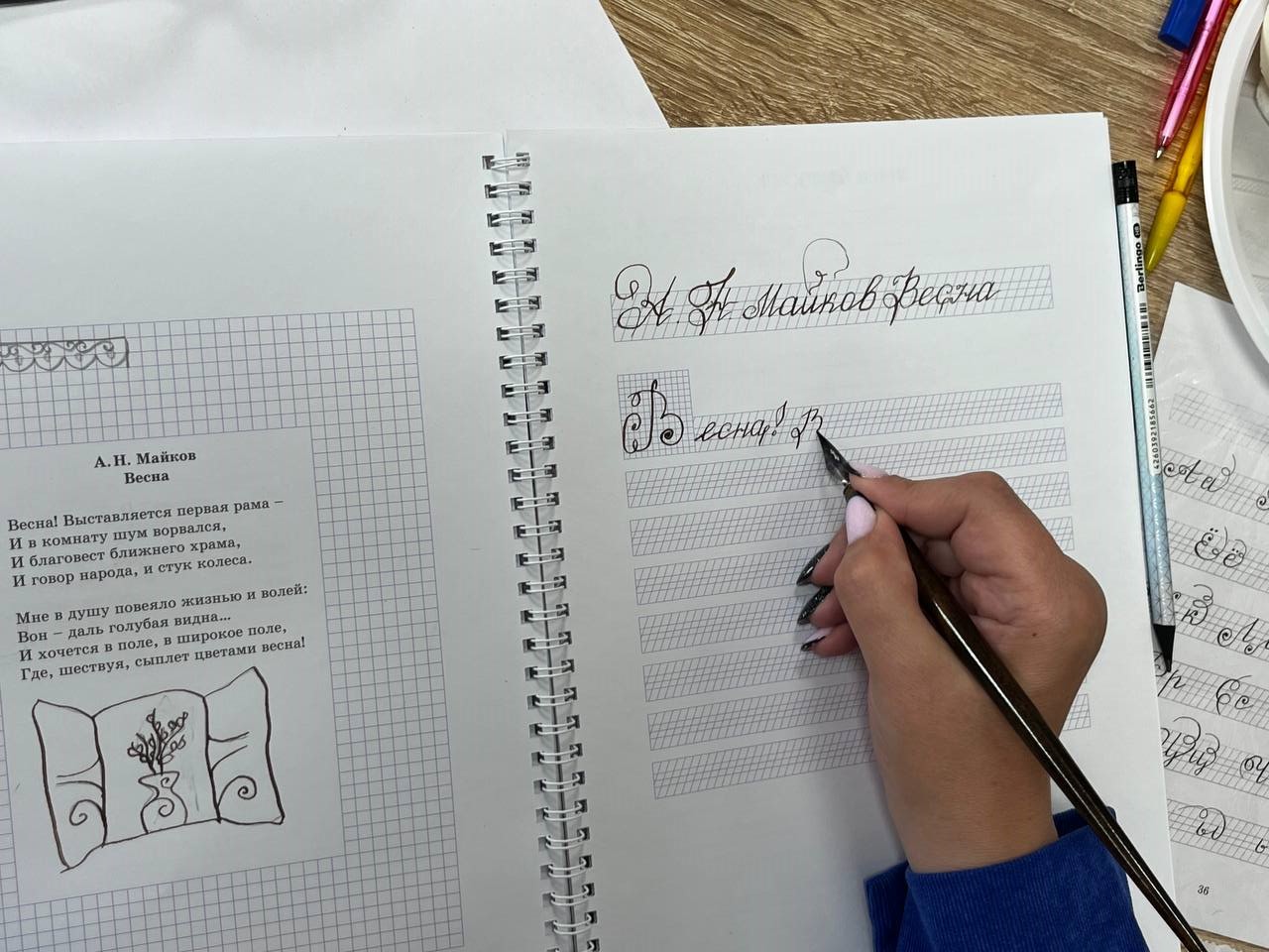 Марина Алексеевна очень светлый и добрый человек, научила писать пером, подходила к каждому, помогала. Своим детям обязательно закажу тетради РКШ и буду с ними заниматься.